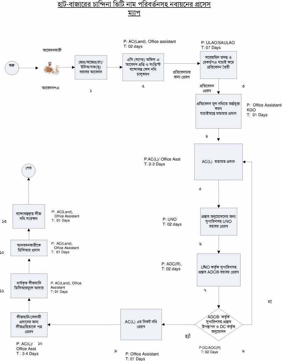 | ২ | হাট বাজারের চান্দিনা ভিটি একসনা বন্দোবস্ত পদ্ধতি | দেখুন | |
