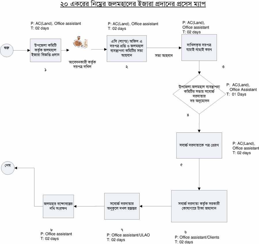 | ৬ | ২০ একর পর্যন্ত জলমহাল ইজারা প্রদান পদ্ধতি | দেখুন | |